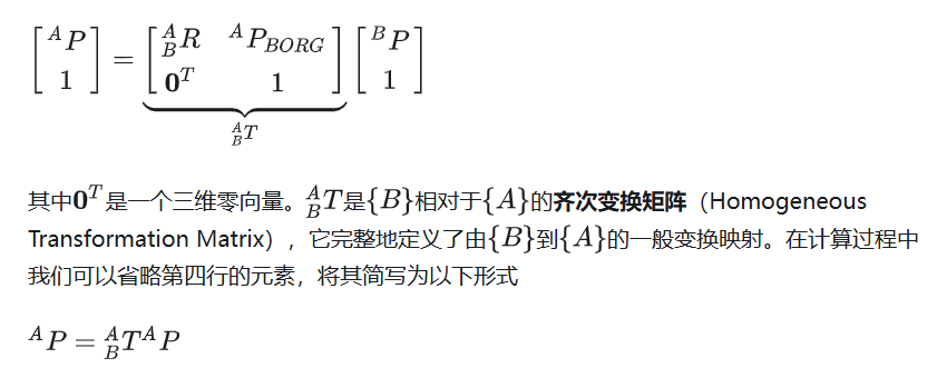 传递矩阵 T4 稍作变换即可得到摄像机相对于相机坐标系相对于世界坐标系位姿的齐次变换矩阵。当得到目标物相对于相机的坐标 p 后,使用 T4' 做乘 p 便可以得到目标物在世界坐标系下的坐标。