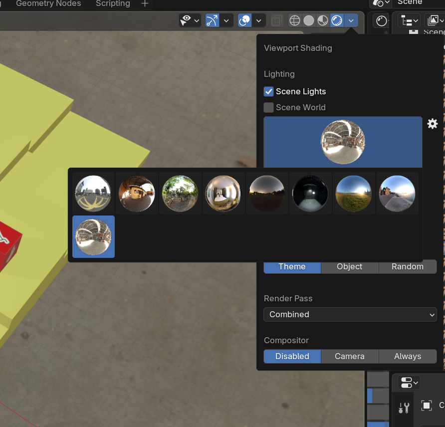 在上述操作中,我关掉了 scene world,是因为我只是想要预染我的环境光,并不想对其他参数进行更加细致的修改。或者说,我只需要一个已经包含背景贴图和环境光的 HDIR 渲染,即可达到我想要的“背景复杂,光照复杂,真实”的数据标记效果。因此不用做更进一步的修改。如果有需要,如想加入雾气等效果,可以在 shader editer 里面对 world 进行更加细致的编辑。