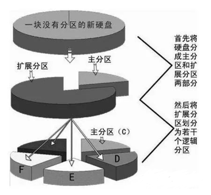 - 扩展分区 本身在主分区表中占用一个分区表项,充当一个容器或“占位”,它并不是用来直接格式化并作为文件系统挂载的分区。